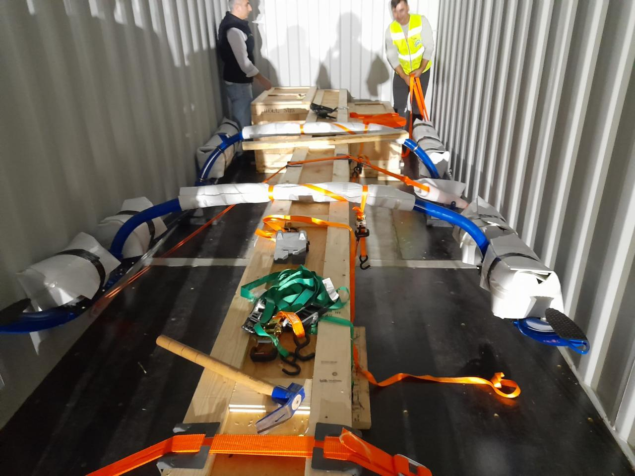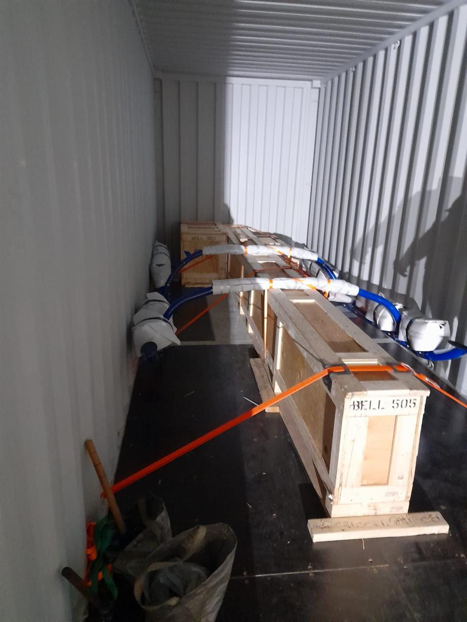 Deneyimli gümrük deposu ekibi sayesinde, aktarma mükemmel bir şekilde, tek bir aksaklık veya sorun olmadan gerçekleşti. Yükleme uzmanları, helikopteri Kanadalı sabitlemeden daha iyi bir şekilde sabitledi, sabitleme için bir garanti sertifikası verdiler ve konteyner ters dönse bile helikoptere bir şey olmayacağını söylediler. Yani, her şeyi mükemmel bir şekilde çaktılar, vidaladılar ve sabitlediler.
